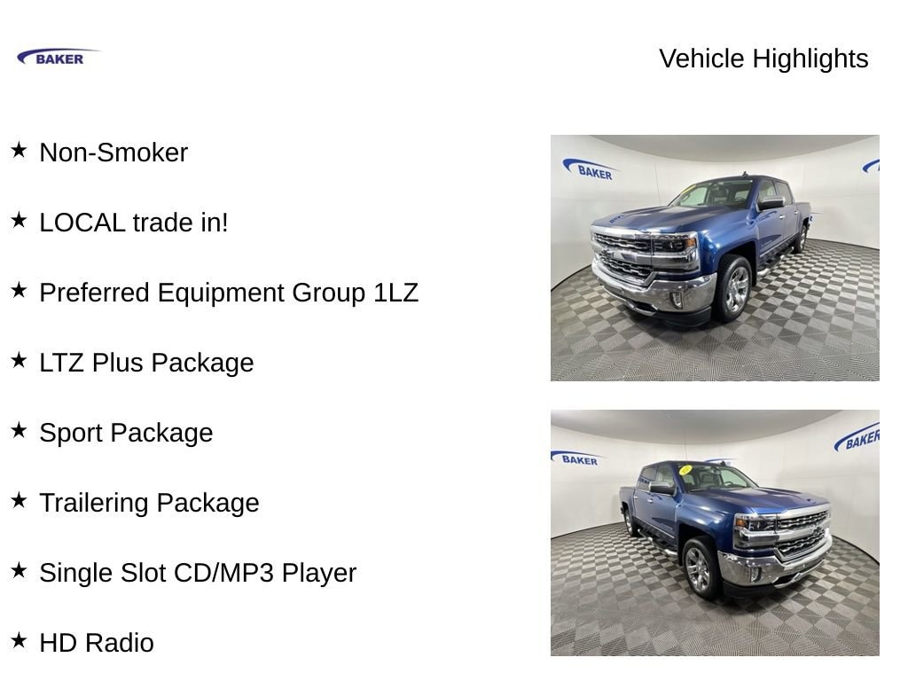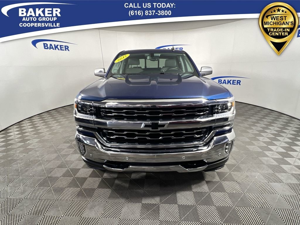 Deep Ocean Blue Metallic 2017 Chevrolet Silverado 1500 LTZ 1LZ 4WD 6-Speed Automatic Electronic with Overdrive EcoTec3 5.3L V8 Non-Smoker, LOCAL trade in!, Silverado 1500 LTZ 1LZ, EcoTec3 5.3L V8, 6-Speed Automatic Electronic with Overdrive, 4WD, Deep Ocean Blue Metallic, Dark Ash With Jet Black Interior Accents Leather, 110-Volt AC Power Outlet, 150 Amp Alternator, 3.42 Rear Axle Ratio, 4.2 Diagonal Color Display Driver Info Center, 6 Speaker Audio System, Auxiliary External Transmission Oil Cooler, Bluetooth® For Phone, Chrome Bodyside Moldings, Chrome Cap Power-Adjustable Heated Outside Mirrors, Chrome Door Handles, Chrome Grille Surround, Chrome Mirror Caps, Deep-Tinted Glass, Dual-Zone Automatic Climate Control, Electric Rear-Window Defogger, Exterior Parking Camera Rear, EZ Lift & Lower Tailgate, Front Chrome Bumper, Front Frame-Mounted Recovery Hooks, HD Radio, Heated & Vented Front Seating, Heavy-Duty Rear Locking Differential, Integrated Trailer Brake Controller, LTZ Plus Package, Memory seat, Power Adjustable Pedals, Power driver seat, Power passenger seat, Power Sliding Rear Window, Preferred Equipment Group 1LZ, Rear Chrome Bumper, Rear Vision Camera, Remote Keyless Entry, Remote Locking Tailgate, Remote Vehicle Starter System, Single Slot CD/MP3 Player, Sport Package, Trailering Package, Ultrasonic Front & Rear Park Assist, Wheels: 20 x 9 Chrome, Wireless Charging.
