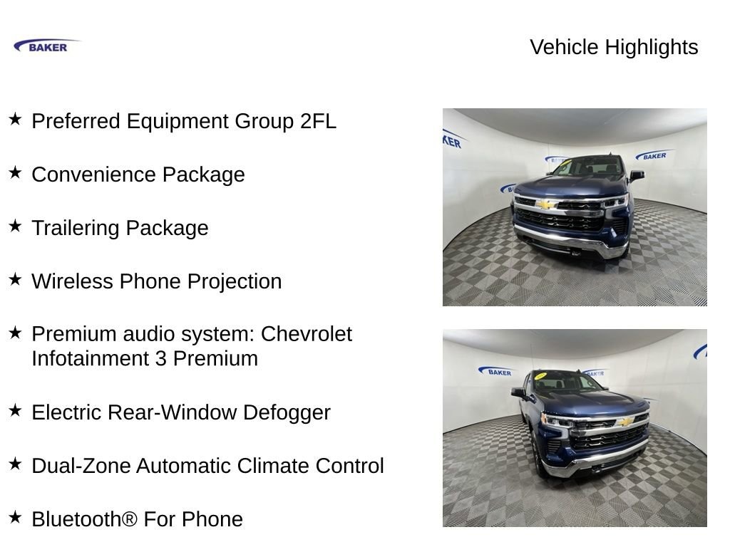New Price! Northsky Blue Metallic 2023 Chevrolet Silverado 1500 LT 4WD 8-Speed Automatic 2.7L Turbo Silverado 1500 LT, 4D Crew Cab, 2.7L Turbo, 4WD, 10-Way Power Driver Seat w/Lumbar, 12.3 Multicolor Reconfigurable Digital Display, 120-Volt Bed Mounted Power Outlet, 120-Volt Instrument Panel Power Outlet, 220 Amp Alternator, 3.42 Rear Axle Ratio, All-Star Edition, Apple CarPlay/Android Auto, Automatic Emergency Braking, Bluetooth® For Phone, Chrome Mirror Caps, Convenience Package, Deep-Tinted Glass, Dual-Zone Automatic Climate Control, Electric Rear-Window Defogger, Electronic Cruise Control, Following Distance Indicator, Forward Collision Alert, Front Frame-Mounted Recovery Hooks, Front Pedestrian Braking, HD Rear Vision Camera, Heated Driver & Front Outboard Passenger Seats, Heated steering wheel, Hitch Guidance, Lane Keep Assist w/Lane Departure Warning, LED Cargo Area Lighting, Power driver seat, Preferred Equipment Group 2FL, Premium audio system: Chevrolet Infotainment 3 Premium, Rear 60/40 Folding Bench Seat (Folds Up), Trailering Package, Wheels: 20 x 9 Painted Aluminum, Wireless Phone Projection.