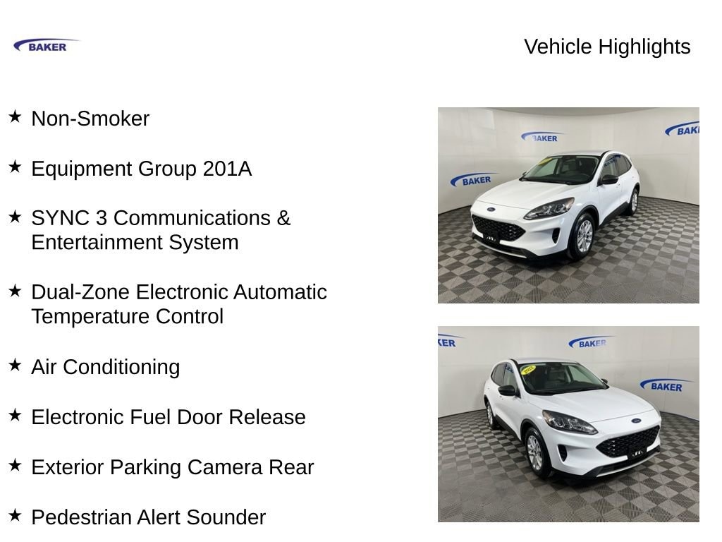 New Price! Oxford White 2022 Ford Escape Hybrid SE FWD eCVT 2.5L iVCT Non-Smoker, Escape Hybrid SE, 2.5L iVCT, eCVT, FWD, Oxford White, Gray Cloth, 8-Way Power Driver Seat, Air Conditioning, Dual-Zone Electronic Automatic Temperature Control, Electronic Fuel Door Release, Equipment Group 201A, Exterior Parking Camera Rear, Pedestrian Alert Sounder, SYNC 3 Communications & Entertainment System, Wheels: 17 Shadow Silver-Painted Aluminum.