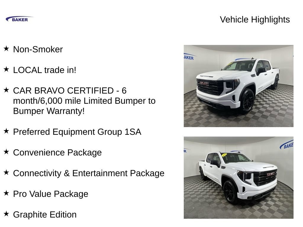 New Price! Summit White 2023 GMC Sierra 1500 Pro 4WD 8-Speed Automatic 2.7L I4 Turbocharged DOHC 16V LEV3-ULEV50 310hp Non-Smoker, LOCAL trade in!, CAR BRAVO CERTIFIED - 6 month/6,000 mile Limited Bumper to Bumper Warranty!, Sierra 1500 Pro, 2.7L I4 Turbocharged DOHC 16V LEV3-ULEV50 310hp, 8-Speed Automatic, 4WD, Summit White, Black Cloth, 2 Charge/Data USB Ports, 220 Amp Alternator, 3.42 Rear Axle Ratio, 4-Way Manual Driver Seat Adjuster, 4-Way Manual Passenger Seat Adjuster, Apple CarPlay/Android Auto, Automatic Emergency Braking, Black Manual Outside Mirrors, Body Color Lower Front Bumper, Body Color Upper Grille, Chrome Header w/Flat Black Grille Insert Bars, Connectivity & Entertainment Package, Convenience Package, Cruise Control, Deep-Tinted Glass, Electric Rear-Window Defogger, EZ Lift Power Lock & Release Tailgate, Forward Collision Alert, Front Frame-Mounted Recovery Hooks, Front Pedestrian Braking, GMC Connected Access Capable, Graphite Edition, HD Rear Vision Camera, Heated Power-Adjustable Outside Mirrors, High Capacity Suspension Package, Hitch Guidance, LED Cargo Area Lighting, Power Door Locks, Preferred Equipment Group 1SA, Premium audio system: GMC Infotainment System, Pro Value Package, Push Button Start, Rear Body-Color Bumper, Remote Keyless Entry, Remote Vehicle Starter System, SiriusXM Radio, Solar Absorbing Tinted Glass, Standard Suspension Package, Trailering Package, Wheels: 20 x 9 High Gloss Black Painted Aluminum, Wi-Fi Hotspot Capable, Wireless Phone Projection.CALL US TODAY 6168373800. Recent Arrival!