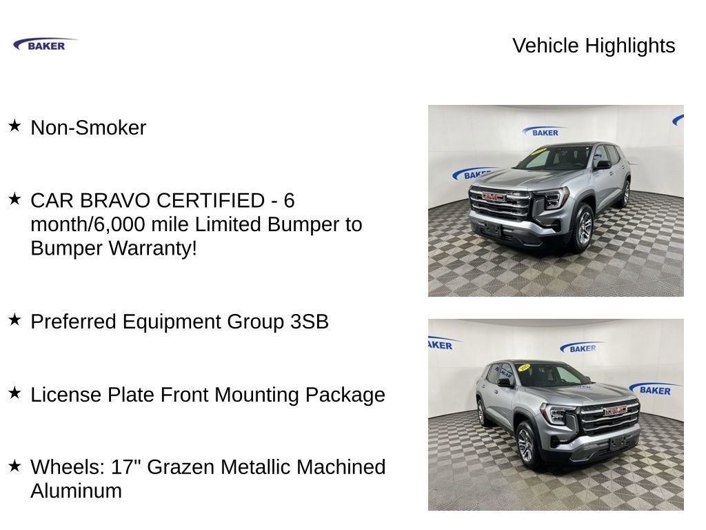 New Price! Sterling Metallic 2025 GMC Terrain Elevation AWD 8-Speed Automatic with Overdrive 1.5L DOHC Non-Smoker, CAR BRAVO CERTIFIED - 6 month/6,000 mile Limited Bumper to Bumper Warranty!, Terrain Elevation, 4D Sport Utility, 1.5L DOHC, AWD, Sterling Metallic, After Dark Cloth, License Plate Front Mounting Package, Preferred Equipment Group 3SB, Wheels: 17 Grazen Metallic Machined Aluminum.