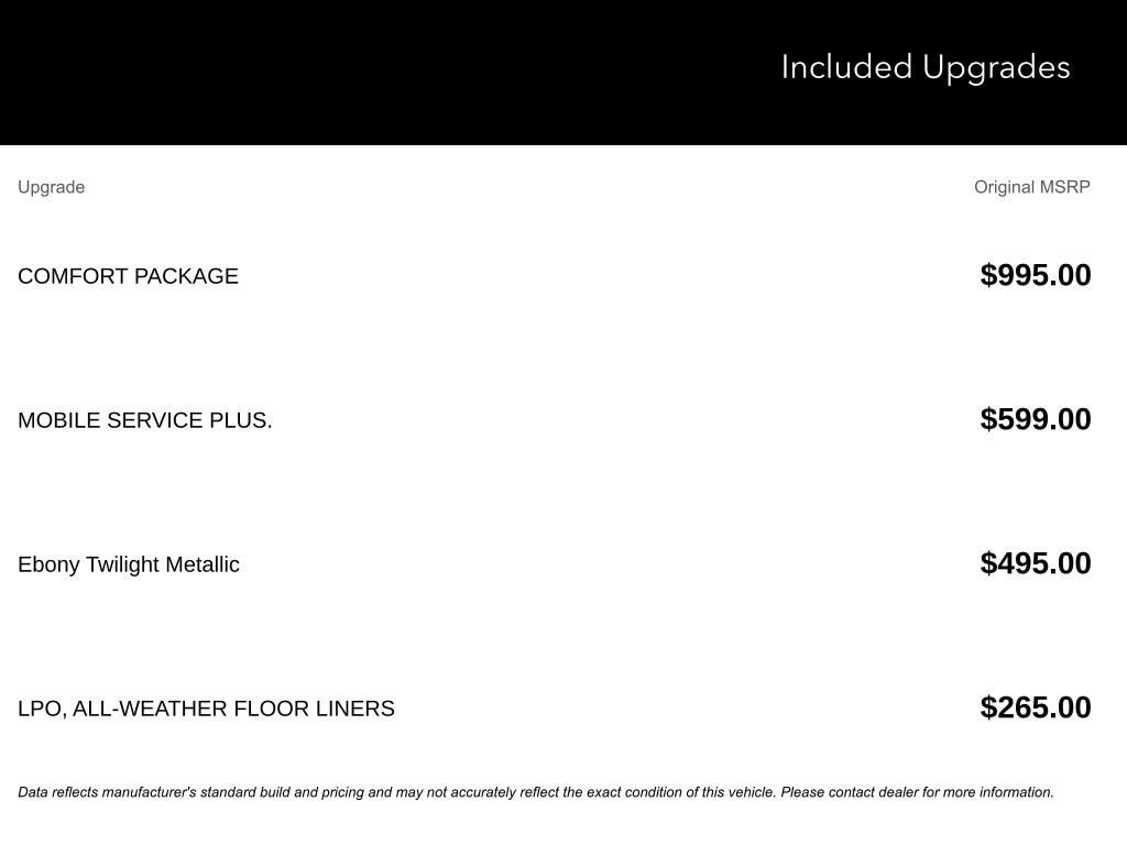 The Manufacturer’s Suggested Retail Price excludes tax, title, license, dealer fees and optional equipment.