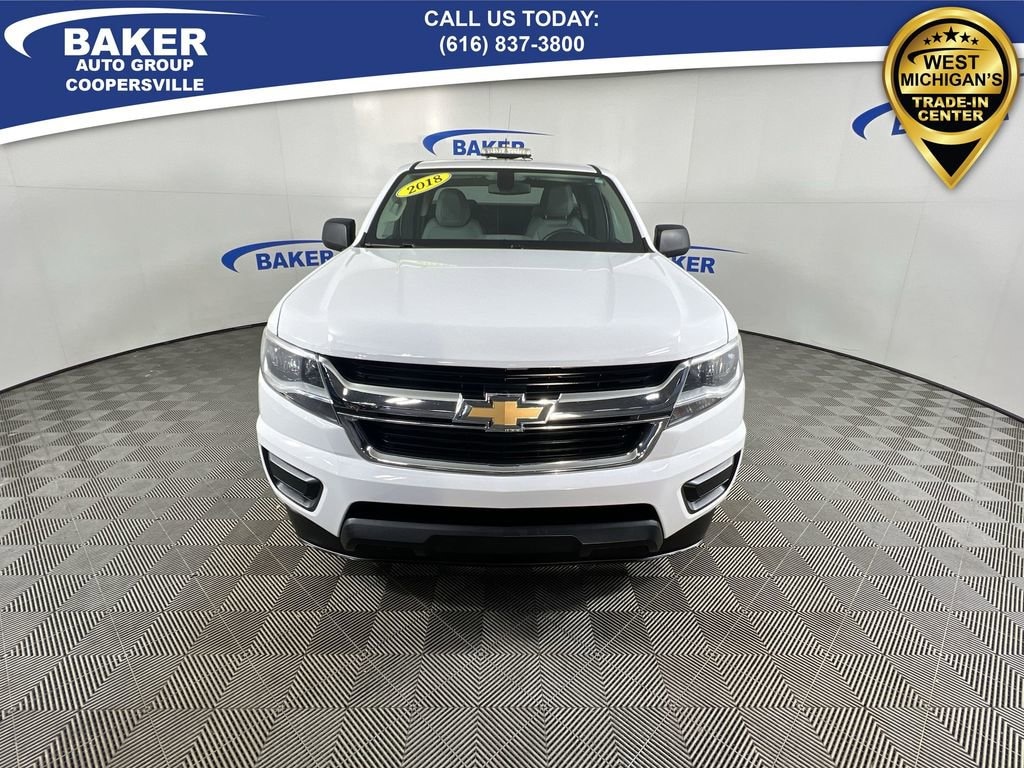 New Price! Summit White 2018 Chevrolet Colorado Work Truck 4WD 6-Speed Automatic 2.5L I4 DI DOHC VVT Non-Smoker, LOCAL trade in!, CAR BRAVO CERTIFIED - 12 month/12,000 mile Limited Bumper to Bumper Warranty!, Colorado Work Truck, 2.5L I4 DI DOHC VVT, 6-Speed Automatic, 4WD, Jet Black/Dark Ash w/Vinyl Seat Trim, 4.10 Rear Axle Ratio, 6-Speaker Audio System Feature, Air Conditioning, Apple CarPlay/Android Auto, Driver 4-Way Power Seat Adjuster, Electronic Automatic Cruise Control, Extended Range Remote Keyless Entry, Exterior Parking Camera Rear, EZ-Lift & Lower Tailgate, Preferred Equipment Group 4WT, Premium audio system: Chevrolet MyLink, Radio: AM/FM w/7 Diagonal Color Touch Screen, Rear step bumper, Unauthorized Entry Theft-Deterrent System, Wheels: 16 x 7 Ultra Silver Metallic Steel, WT Convenience Package.