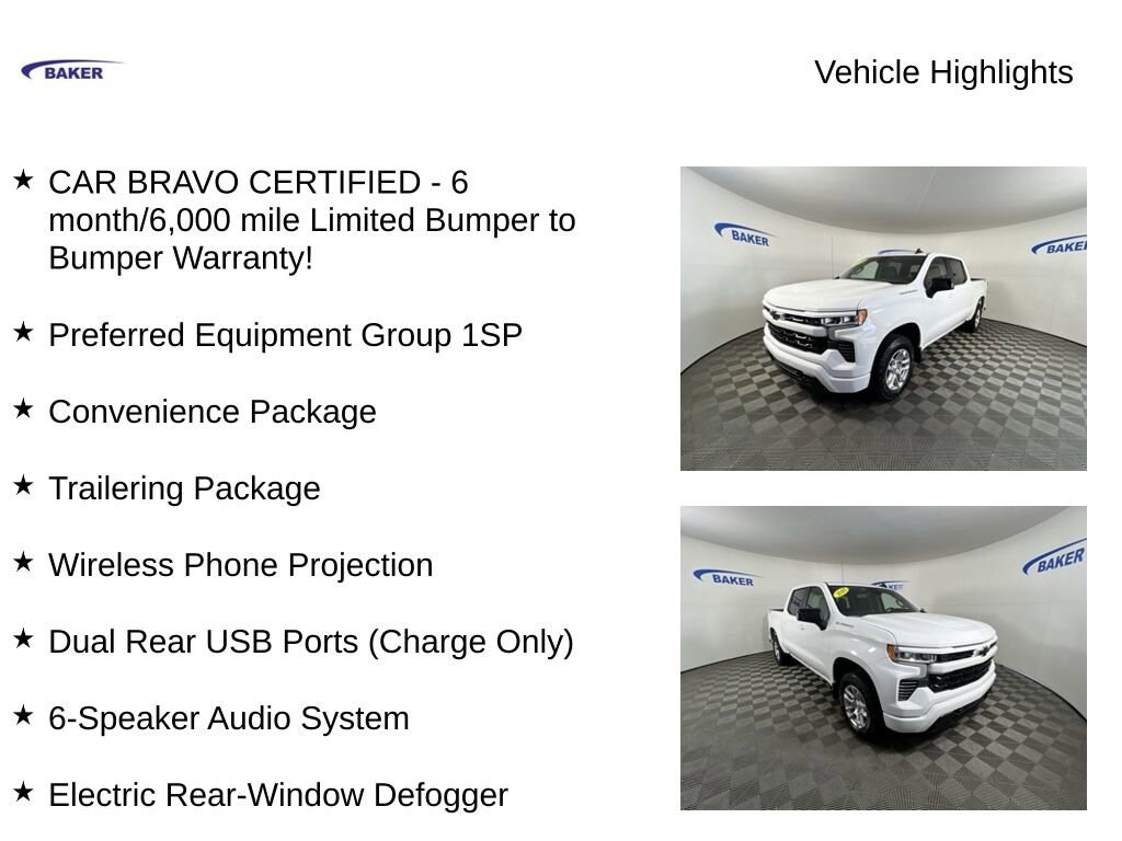 Summit White 2023 Chevrolet Silverado 1500 RST 4WD 10-Speed Automatic EcoTec3 5.3L V8 CAR BRAVO CERTIFIED - 6 month/6,000 mile Limited Bumper to Bumper Warranty!, Silverado 1500 RST, 4D Crew Cab, EcoTec3 5.3L V8, 4WD, 10-Way Power Driver Seat w/Lumbar, 12.3 Multicolor Reconfigurable Digital Display, 120-Volt Instrument Panel Power Outlet, 170 Amp Alternator, 3.23 Rear Axle Ratio, 6-Speaker Audio System, All-Star Edition, Apple CarPlay/Android Auto, Auto-Locking Rear Differential, Bluetooth® For Phone, Color-Keyed Carpeting Floor Covering, Compass, Convenience Package, Deep-Tinted Glass, Dual Rear USB Ports (Charge Only), Dual-Zone Automatic Climate Control, Electric Rear-Window Defogger, Electronic Cruise Control, EZ Lift Power Lock & Release Tailgate, Following Distance Indicator, Forward Collision Alert, Front dual zone A/C, Front Frame-Mounted Recovery Hooks, Front LED Fog Lamps, Front Pedestrian Braking, HD Rear Vision Camera, Heated Driver & Front Outboard Passenger Seats, Heated Power-Adjustable Outside Mirrors, Heated Steering Wheel, High Gloss Black Mirror Caps, Hitch Guidance, Inside Rear-View Mirror w/Tilt, Integrated Trailer Brake Controller, Keyless Open & Start, LED Cargo Area Lighting, OnStar & Chevrolet Connected Services Capable, Preferred Equipment Group 1SP, Rear 60/40 Folding Bench Seat (Folds Up), Remote Vehicle Starter System, Standard Tailgate, Theft Deterrent System (Unauthorized Entry), Trailering Package, Wheels: 18 x 8.5 Bright Silver Painted Aluminum, Wireless Phone Projection, Wrapped Steering Wheel.CALL US TODAY 6168373800. Recent Arrival!