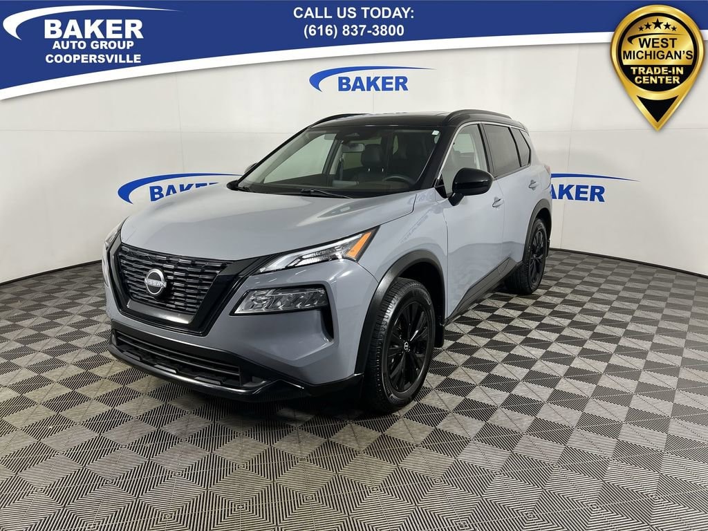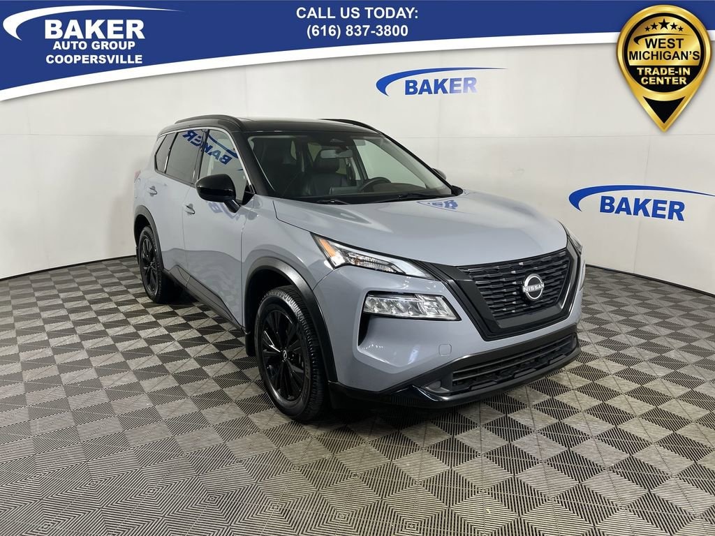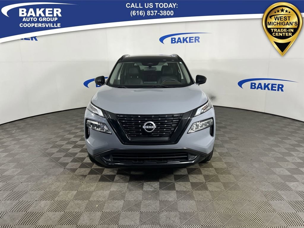 Boulder Gray Pearl/Super Black 2023 Nissan Rogue SV AWD CVT with Xtronic 1.5L I3 Turbocharged DOHC 12V LEV3-ULEV50 201hp CAR BRAVO CERTIFIED - 12 month/12,000 mile Limited Bumper to Bumper Warranty!, Rogue SV, 1.5L I3 Turbocharged DOHC 12V LEV3-ULEV50 201hp, AWD, Charcoal Artificial Leather, Automatic temperature control, Black High Gloss Exterior Mirror Caps, Front dual zone A/C, Heated Driver & Front Passenger Seats, Heated Leather Wrapped Steering Wheel, Leatherette Door Trim Inserts w/Stitch, Midnight Edition Package, NissanConnect featuring Apple CarPlay and Android Auto, Panoramic Moonroof, Power driver seat, Power Liftgate, PRIMATEX Leatherette Seat Trim, Rear Door Sunshades, Rear Parking Sensors, Rear Personal Lights, Silver Painted Roof Rails, SV Premium B Package, TailorFit Leatherette Seat Trim, Wheels: 18 Gloss Black Painted Alloy.